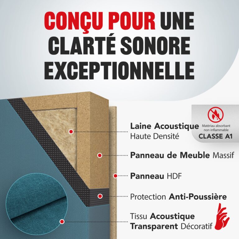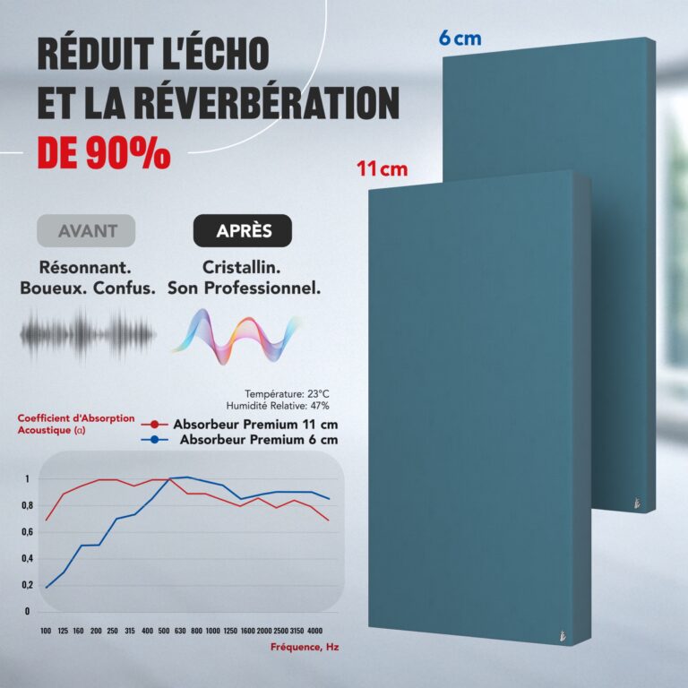 Élimine efficacement la réverbération, les ondes stationnaires et l’écho, garantissant un son clair et net dans chaque pièce.