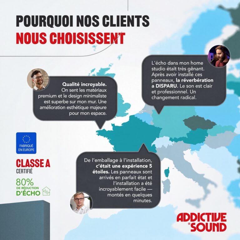 Chaque panneau est signé du logo Addictive Sound – gage de qualité et de professionnalisme dans l’acoustique.