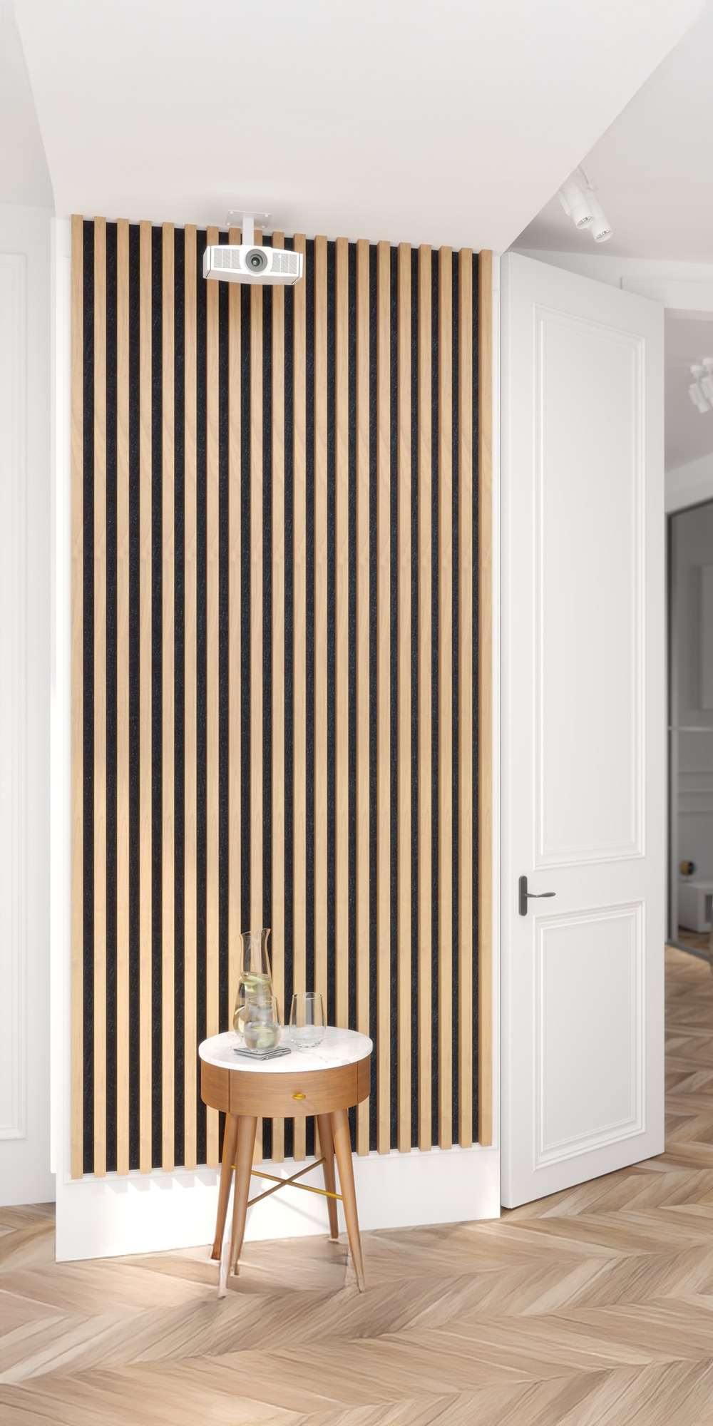 Les lamelles sur feutre sont un produit parfaitement adapté à la plupart des intérieurs. Les panneaux muraux acoustiques sont intemporels et s’intègrent aussi bien dans des espaces modernes que classiques.