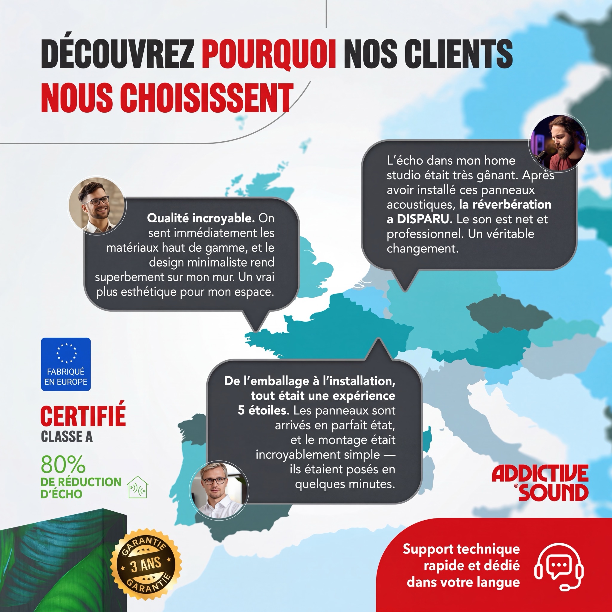 Nous vous conseillons gratuitement sur l’acoustique, répondons à vos questions et proposons les meilleures solutions adaptées à vos besoins.